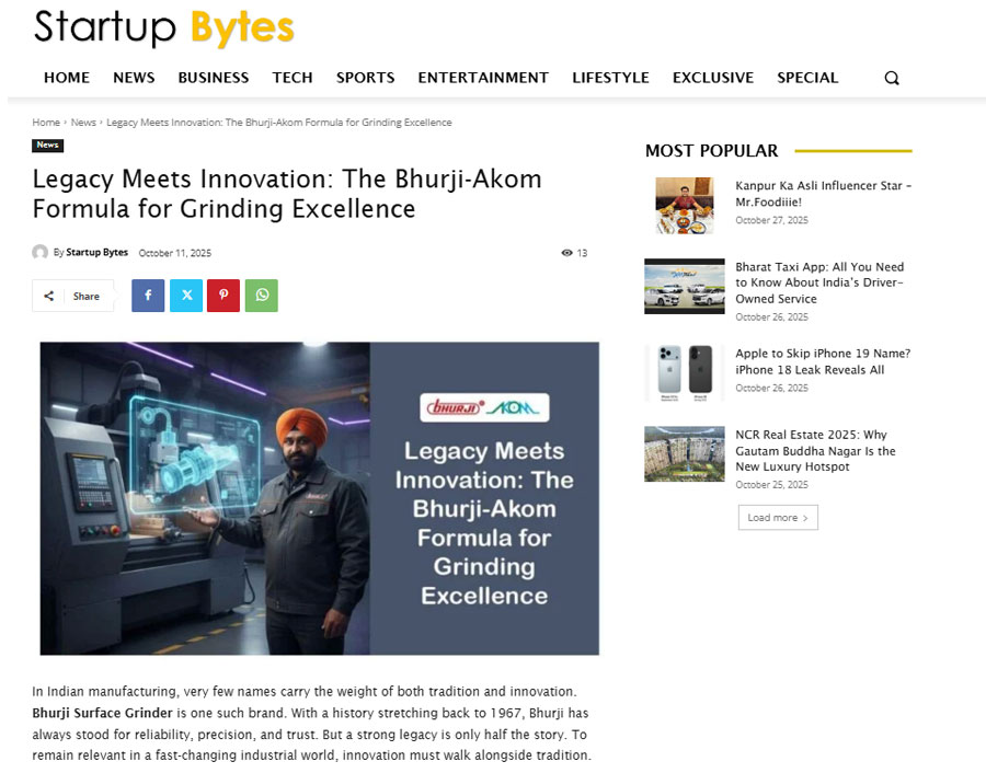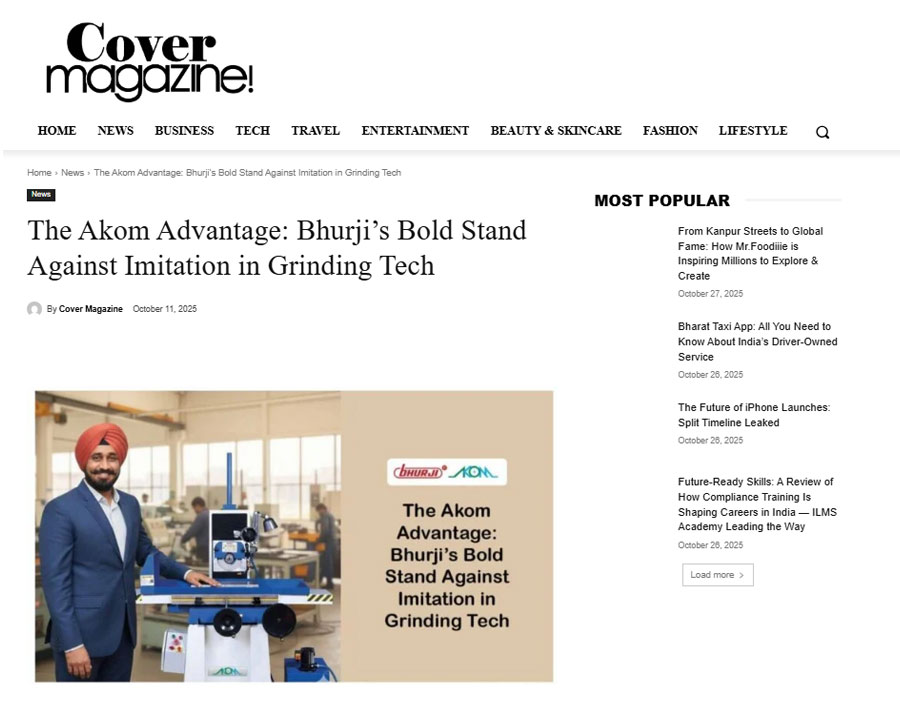 Beware of Imitations! Always check for the Bhurji Trademark + Akom brand name on your surface grinder to ensure you’re getting the original Bhurji engineering excellence.